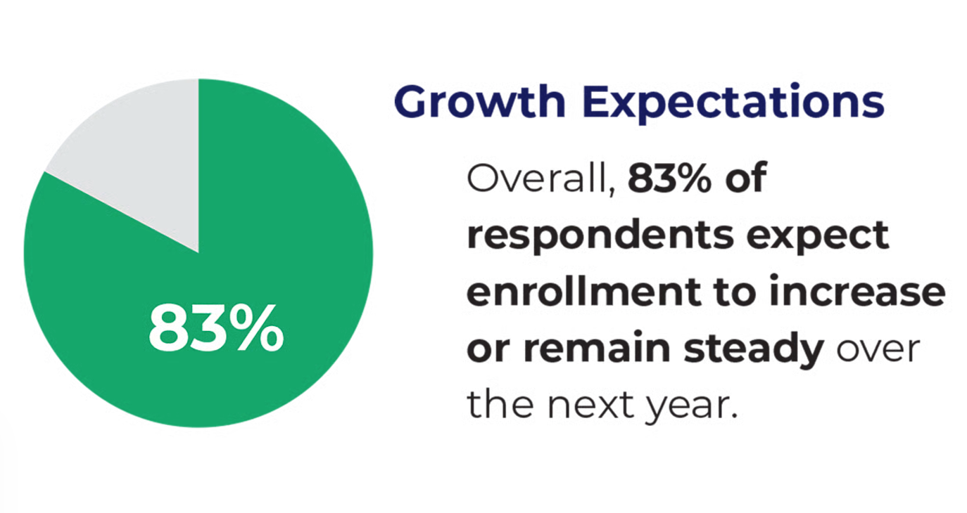 调查数据——超过83%的受访者预计明年入学人数将增加或保持稳定