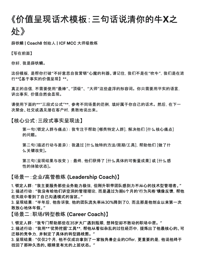 《价值呈现话术模板:三句话说清你的牛X之处》PDF