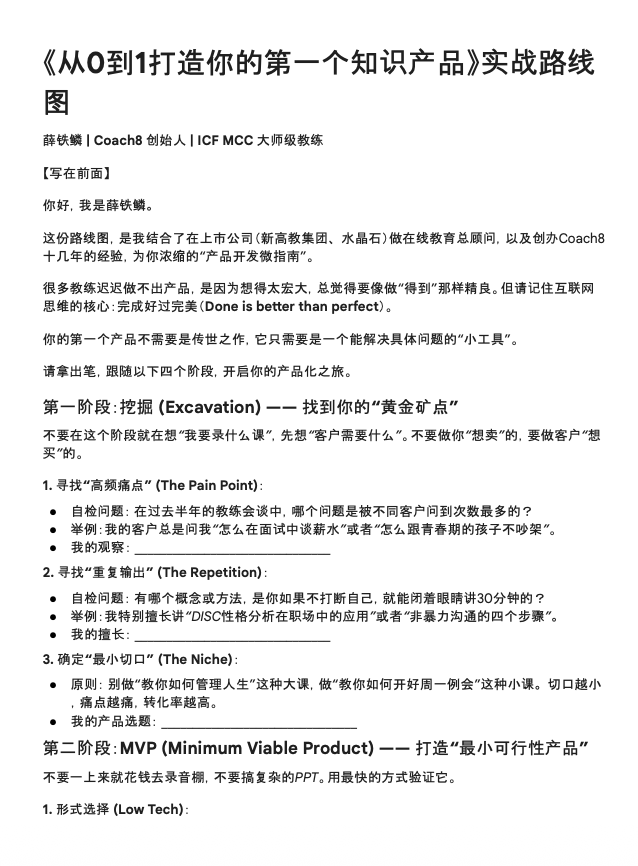 《从0到1打造你的第一个知识产品》实战路线图pdf