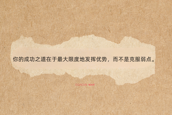 “你的成功之道在于最大限度地发挥优势,而不是克服弱点。每个人最大的成长空间在于其最强的优势领域。我们不应该追求成为一个没有缺点的人,而应该致力于将自己的天赋发挥到极致。”