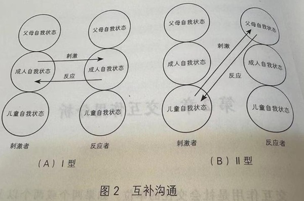 例如,一方从“成人”状态发问:“现在几点了?”另一方也从“成人”状态回答:“十点半。” 对话可以顺畅地进行下去。