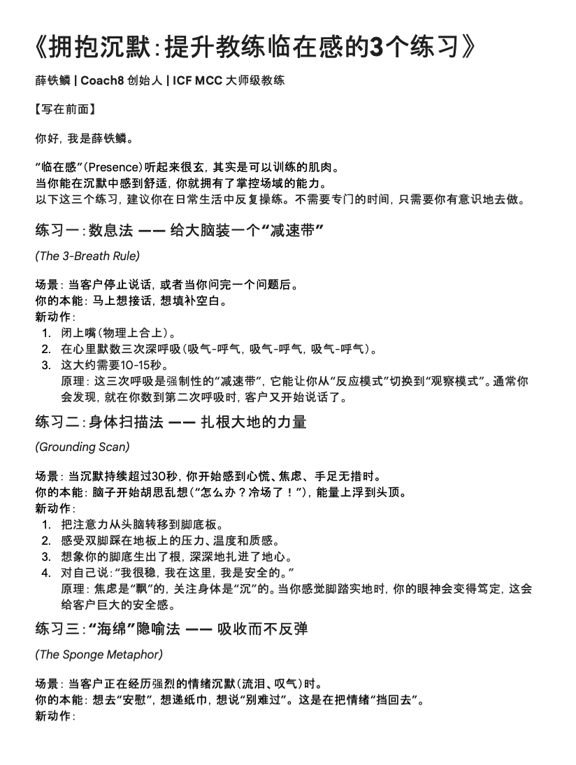 《拥抱沉默:提升教练临在感的3个练习》