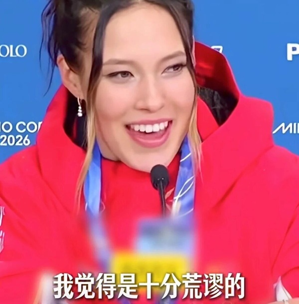 然而,谷爱凌没有丝毫的慌乱,反而爆发出一阵爽朗、自信的大笑,仿佛听到了什么滑稽的事。(这个第一反应,这个笑声,传递出的能量真的解气。)