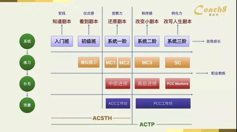 要注意:系统二阶和系统三阶只有在ACTP的体系下才能够去学习,甚至你还可以学习到PCC的工作坊,这都是觉察很深的工作坊。所以我们其实已经达到了一个目的:
