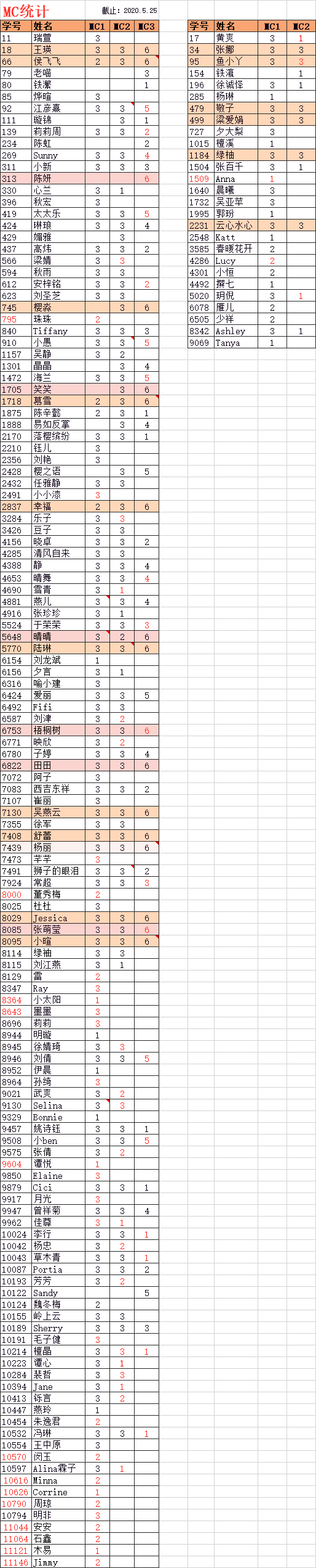 MC得A成绩单(统计截止5月25日)