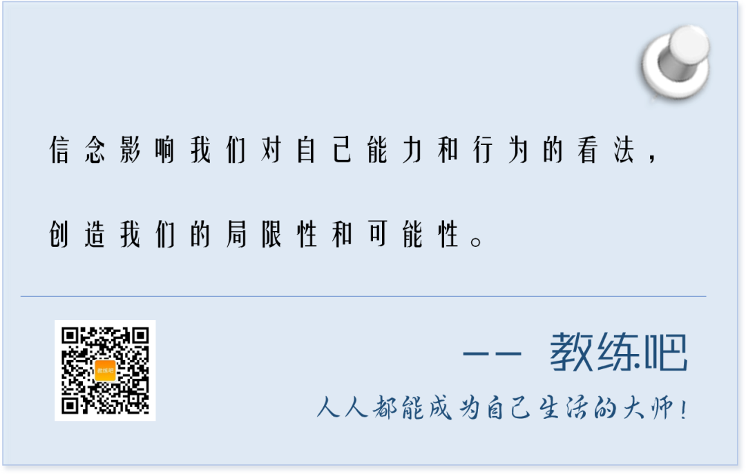 在许多情况下,我们的客户会回到他们以前的行为模式,让客户和教练都感到沮丧。但如果你能帮助你的客户,找到并改变那些他们行为模式背后所支撑的信念,你就能创造出他们正在寻找的实质性的、持久的转变。