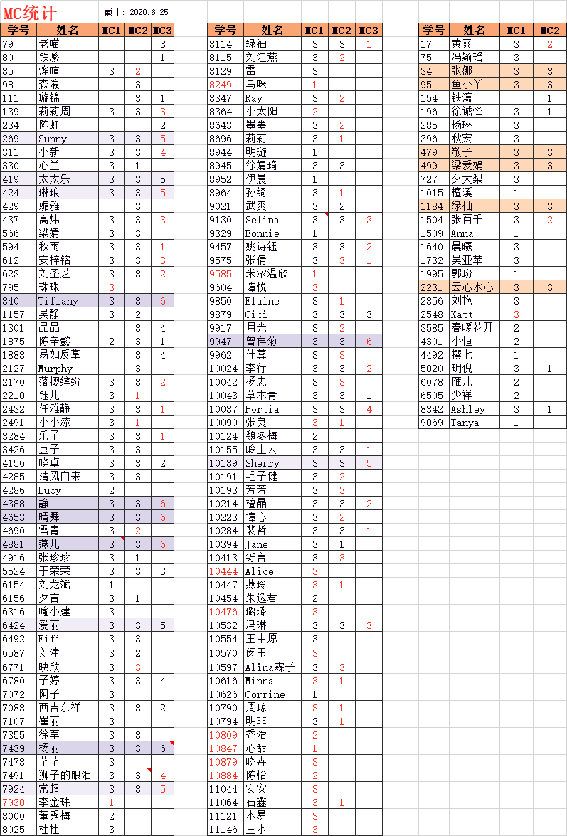 MC得A成绩单(统计截止6月25日)