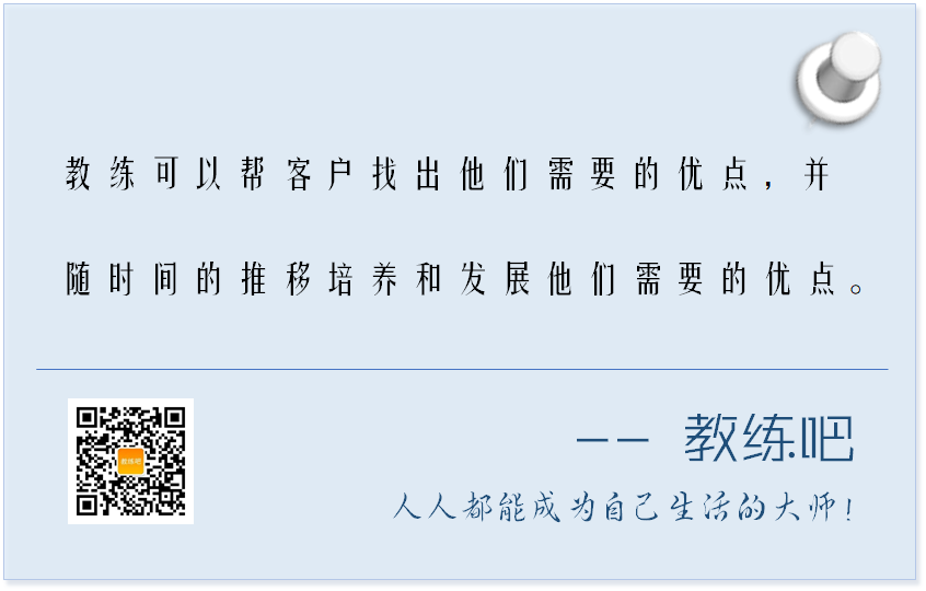 教练要相信客户“本自具足”,相信客户有自己的优势和资源。客户则希望通过教练约谈,充分利用自己的优势,发掘自身的潜力和资源,并利用他们的优势和资源在工作和个人生活中取得更大的收获。