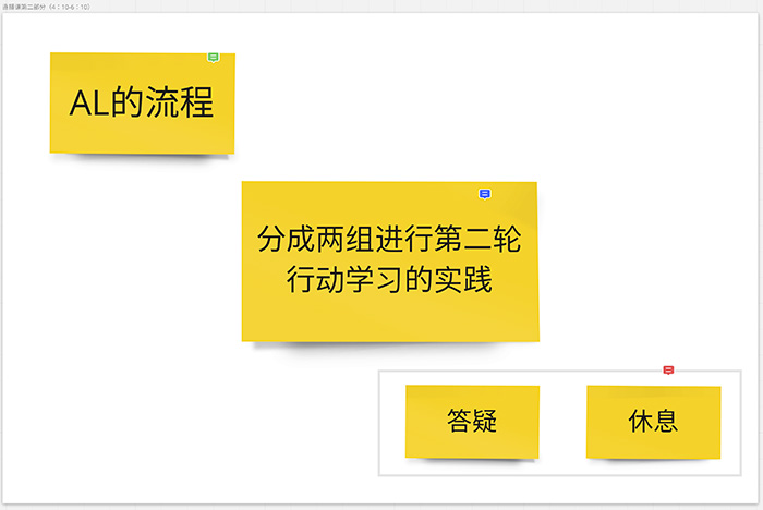 很多时候我们不缺知识,缺的是解决问题的能力,AL是强有力的工具。 AL=解决问题+发展团队+发展个人,AL教练在适当时机(参与度、节奏、冲突、混乱等)介入发展团队和个人。 AL在培养领导力方面非常有力,一举三得:①从关注的领导力不同可以给出多维度的视角;②锻炼和提升个人能力;③给团队成员非常好的示范和解决思路。 AL教练要关注:场域、流程、节奏、成员态度&行为&互动,反馈(亦是Demo)需尽可能细节&准确。