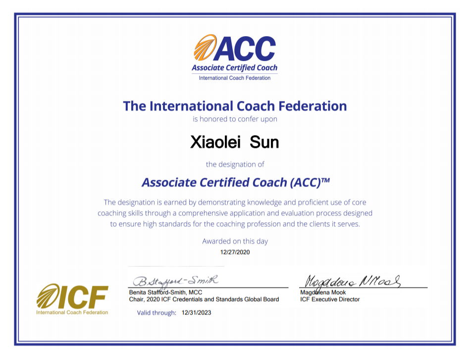 ICF认证ACC教练孙晓雷:做了那么多改变,只为了寻找不变